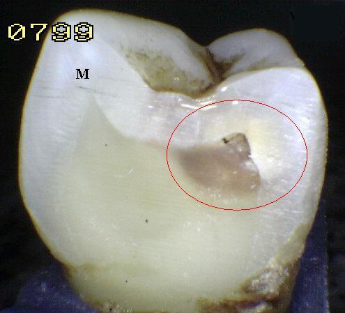 del diente, para confirmar la presencia de una cavidad ( < 0,5mm.de