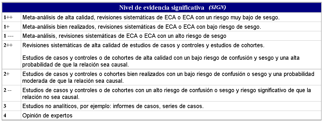 evidencia (SIGN) basada en la determinación de grado