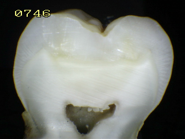 de caries no es consistente con la de las fosas y fisuras teñidas como