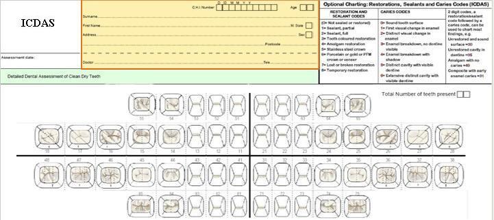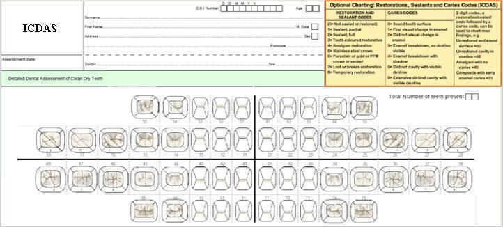 Registro de datos en ficha dental ad hoc para caries de esmalte y dentina |