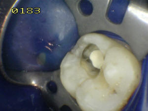 clamp cervical. se utiliza dique de goma oscura para mantener un