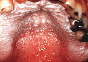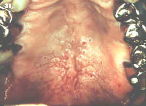 extensa. La formación de nódulos es el resultado del agrandamiento de las glándulas salivales bajo el epitelio.