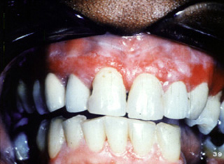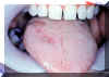 otra vista del eritema de la encía del liquen plano erosivo. |