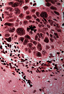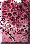 | Una vista a más aumentos muestra las anormalidades celulares similares a aquéllas
