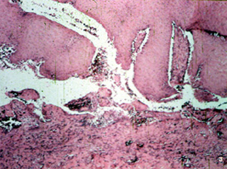 . También hay una respuesta inflamatoria mixta en el tejido conjuntivo