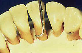 de la punta del inserto contra la superficie dentaria