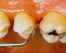diente y la encía, lo más paralelamente posible a la superficie de la raíz.
