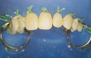 vestibular, mesial y palatino; haciendo un manguito de resina