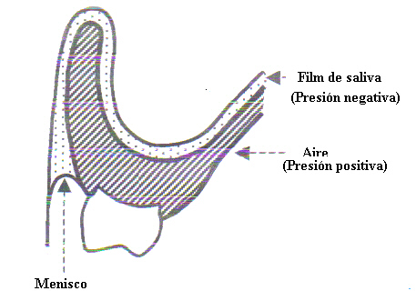 un diferencial de presión entre el film de saliva y el aire (ver figura