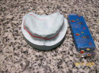 Acondicionamiento con plastilina del del reborde alveolar retentivo Aquí se observa en la tuberosidad derecha. Para realizar la cubeta, se tomo una lamina de acrílico para termo formadora Se debe quitar la protección de naylon