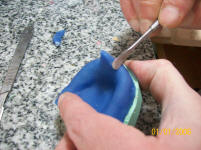 fotocurado (Voco MR) y recorte de la misma con bisturí