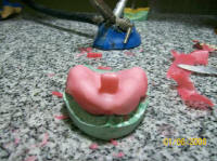 • Desgaste del modelo primario superior , en la zona línea de la "A", con forma de “mariposa” para compensar la contracción del acrílico de termo polimerización.