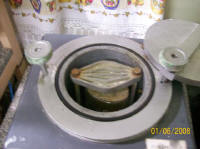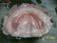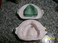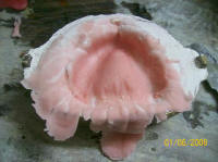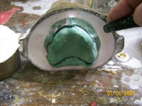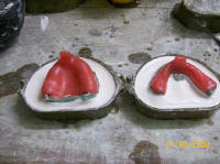 • Se coloca separador de alginatos, se ubica en posición la otra parte de la mufla; se vacía yeso blanco y se coloca la tapa de la mufla.