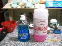 • En la foto inferior los producto utilizados: Detergente (izquierda) Separador a base de alginato (derecha)