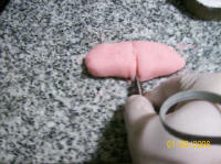 • Se coloca un manguito que debe tener el tamaño de los 4 incisivos inferiores de la prótesis.