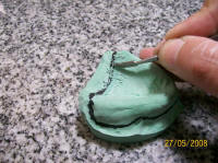 • *Se asienta la hoja de cera conformada como un herradura. Se flamea suavemente para ablandar  y dar forma de herradura a la cera