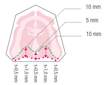 (Hasta un milímetro de profundidad) y la zona central en color negro,