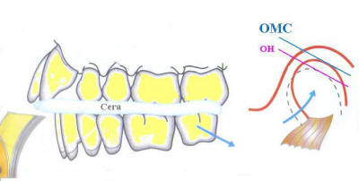 esta forma al interponer la cera, sin las laminillas, un registro axiográfico mostraría una oclusión más