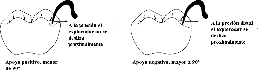 menor a 90º con respecto al reborde marginal. Para ello el explorador es