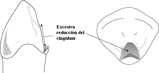 | Si no hay una superficie adecuada para tallar el cingulum del canino