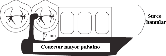 1,5 milímetros de la mucosa, para que solo el acrílico entre en contacto