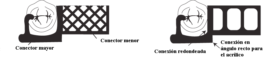 conector menor debe unirse al conector mayor en ángulo recto y cubrir un área