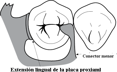retenedor directo, retenedor indirecto, base de prótesis, etc) al conector mayor. |