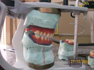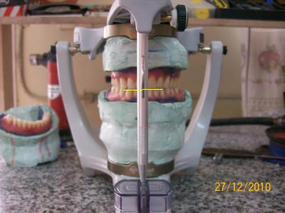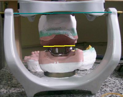 bisagra, determinada por la línea de los cuellos gingivales(Amarillo) |