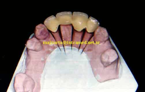 Perno muñón colado en los diente pilares, permite un mayor desgaste sin pérdida de resistencia. 1 mm de metal y 2,5mm de opaquer y porcelana