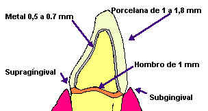 Esquema mostrando los espesores necesarios para el metal y porcelana