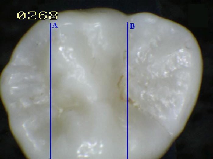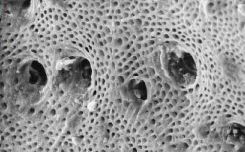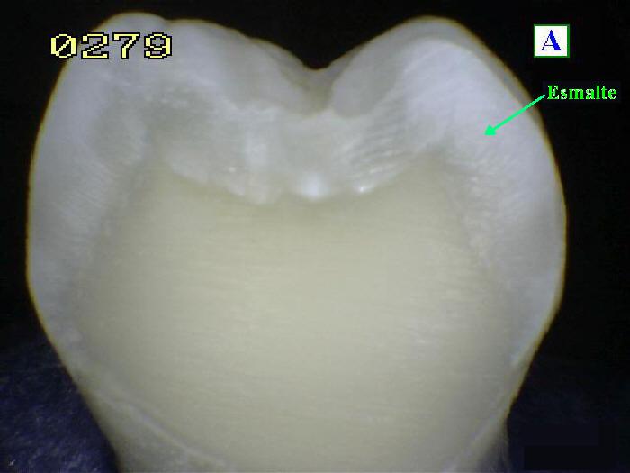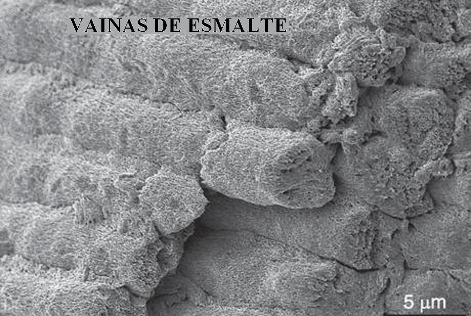 de 2.5 μm cerca de la pulpa, a 1.2 μm en la
