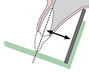 la derecha la raíz vestibular se desplaza más hacia mesial.