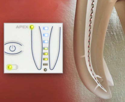InstrumentosEl sistema ofrece tres tamaños de instrumentos para la preparación según los tipos de conductos radiculares. Los instrumentos están listos para su utilización en un blíster estéril y luego de su utilización simplemente se desechan. El sistema imita el movimiento manual de la endodoncia, con un ciclo que gira una vuelta a favor de las manecillas del reloj, se detiene y retrocede un cuarto de vuelta, y nuevamente comienza un nuevo ciclo. Mientras que el operador genera un movimiento de picoteo de unos 3 mm en forma manual con el contrángulo. Para un secado del conducto eficiente existen puntas de papel estériles, correspondientes a la forma de la preparación, así como guttapercha para procedimientos de obturación en frío y en caliente. |