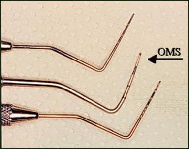 Esta sonda está particularmente diseñada para una manipulación suave de los tejidos blandos ubicados alrededor de la pieza dentaria. La sonda presenta una esfera de 0,5 mm. de diámetro en el extremo, con una porción codificada de color que se extiende desde los 3,5 a los 5,5 mm.