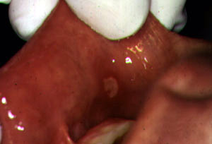 Pueden presentarse aftas menores, úlceras pequeñas de menos de 1 cm de diámetro, dolorosas, con halo rojizo, generalmente en mucosa de revestimiento.