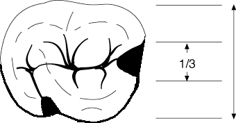 no se extiende hasta el ángulo vestíbulo mesial, sino que queda un